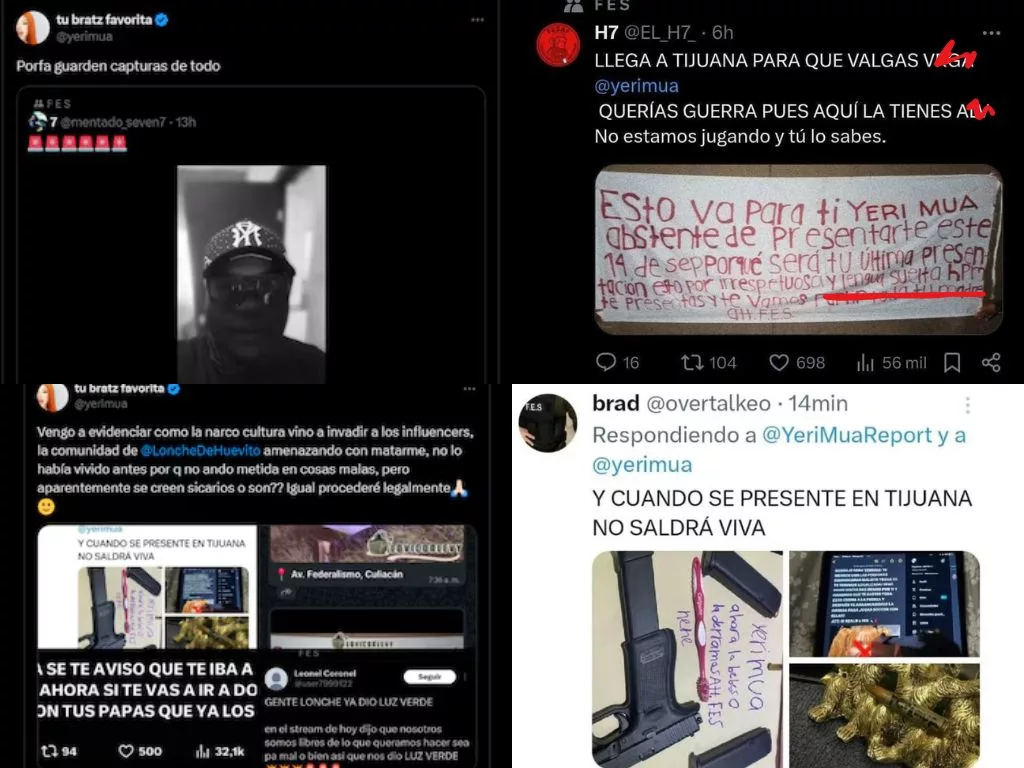 Los supuestos seguidores del streamer inundaron las redes sociales con mensajes de odio, intimidaciones, amenazas y videos de armas de fuego en fotografías de la cantante y su familia, pero el caso se intensificó cuando publicaron una «narcomanta» en la cual le advertían terminar con su vida si se presenta en Tijuana el 14 de septiembre.