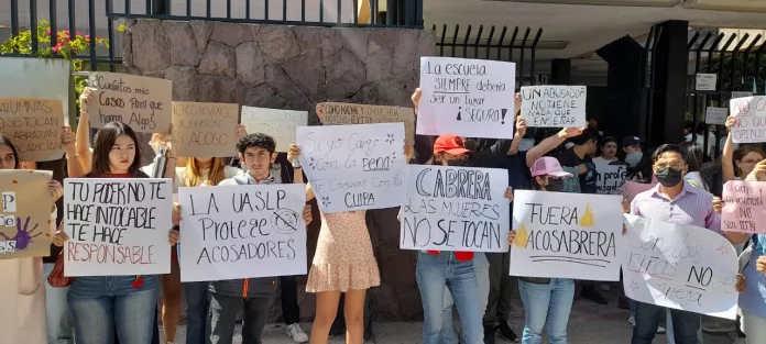 Alumnos y alumnas de la Facultad de Economía de la Universidad Autónoma de San Luis Potosí, se manifestaron la tarde de este miércoles para denunciar un caso de abuso sexual cometido el jueves pasado por parte de un profesor de apellido Cabrera hacia una estudiante, dentro de las mismas instalaciones de la institución.