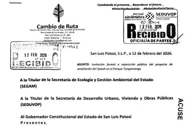 La organización civil Cambio de Ruta A.C., invitó a la Secretaría de Ecología y Gestión Ambiental (SEGAM) y a autoridades estatales a una reunión en la entrada del parque acuático Splash en el Parque Tangamanga I el próximo domingo a las 10:00am.