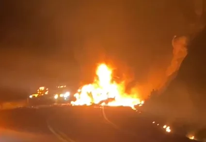 En la curva del tigre, chocaron una camioneta y un trailer, provocando el incendio de ambos vehículos en la madrugada del domingo.