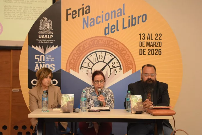 Por su parte, Lourdes Ríos presentó “La de Enmedio”, novela inscrita en el realismo mágico latinoamericano que narra la historia de Elisa, quinta hija de una familia de clase media en la Huasteca Potosina. La autora explicó que el título original era Sincretismo, debido al peso que tiene en la trama la fusión cultural entre tradiciones indígenas y mestizas. Sin embargo, decidió cambiarlo para centrar la mirada en su protagonista. “La palabra sincretismo me llevaba más al concepto social y no tanto a la historia de vida del personaje principal”, señaló.