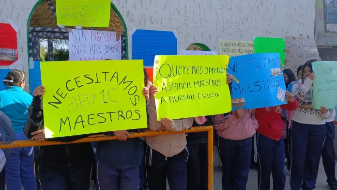 Padres de familia de la Telesecundaria ubicada en la comunidad 20 de Noviembre, en el municipio de Ciudad Fernández, tomaron las instalaciones del plantel en protesta por la falta de dos maestros, una situación que, aseguran, ha afectado gravemente la educación de sus hijos.