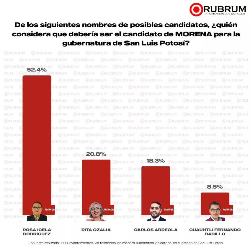 A poco más de un año del proceso electoral de 2027, la carrera por la gubernatura de San Luis Potosí muestra un escenario competitivo y sin definiciones absolutas. De acuerdo con un estudio de opinión elaborado por la casa encuestadora RUBRUM, Morena se coloca al frente en la intención de voto por partido; sin embargo, el alto porcentaje de electores indecisos y la fragmentación del voto opositor mantienen abierta la contienda.