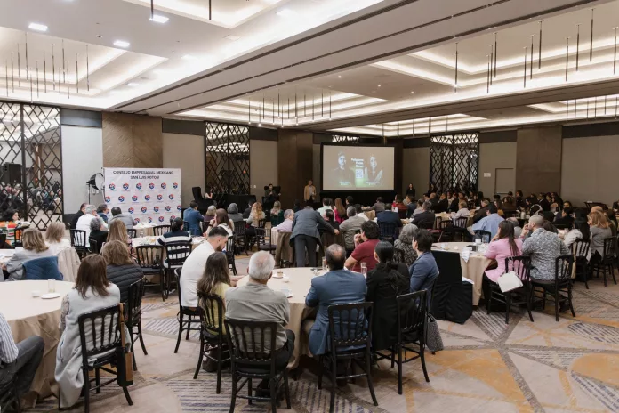 El encuentro fue convocado por el Consejo Empresarial Mexicano, con el objetivo de que la empresa Poligrama, con sede en Monterrey, Nuevo León, presentara los resultados de una encuesta aplicada a finales de 2025, en la que se expone una radiografía del escenario político, social y de percepción ciudadana que prevalece actualmente en la ciudad de San Luis Potosí.