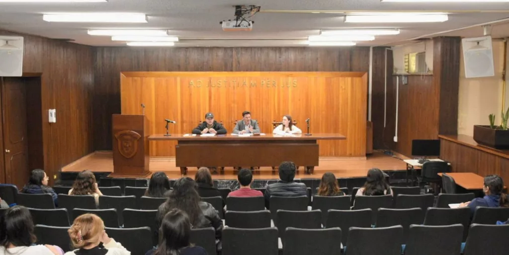 El encuentro tuvo lugar en el auditorio de la Facultad de Derecho Abogado Ponciano Arriaga Leija, con la participación de estudiantes, directivos, personal académico y administrativo.