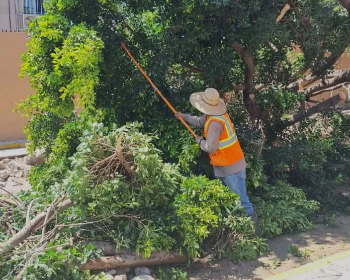 Las precipitaciones ocasionaron que varios árboles ubicados en las calles León Flores y Luis Magallanes se debilitaran gravemente, representando un riesgo para la integridad física de las personas, así como para el cableado aéreo de la zona. Por ello, se tomó la determinación de retirarlos de manera segura y responsable, bajo la supervisión de la autoridad municipal competente en la materia.