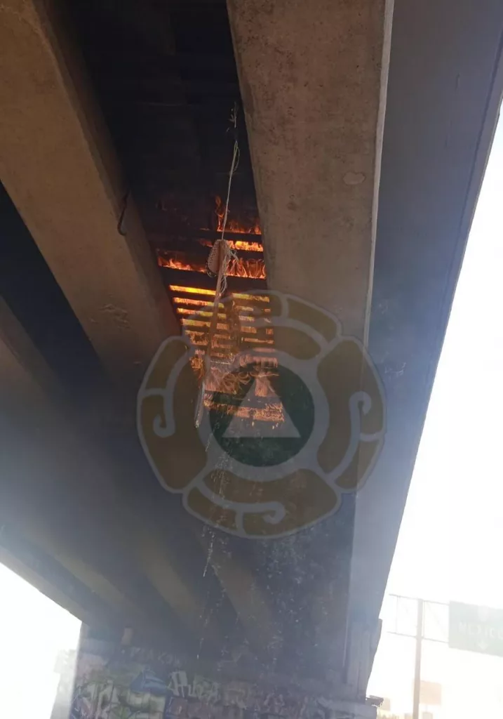 Al arribar al lugar, el personal localizó diversos objetos y muebles destruidos, entre ellos sillones, que se encontraban ardiendo entre las columnas del puente. El fuego generó una densa columna de humo que fue visible desde varios puntos elevados de la zona.