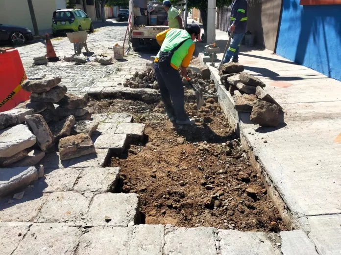 Esta semana, en la colonia Burócrata, se llevan a cabo trabajos de retiro y reposición de adoquines sobre la Avenida Estatuto Jurídico, con el objetivo de conservar la imagen urbana y garantizar una superficie adecuada para el tránsito. En esta misma zona, se atienden cuatro reportes para reparar baches en la calle Salubridad, atendiendo daños acumulados por la temporada de lluvias.