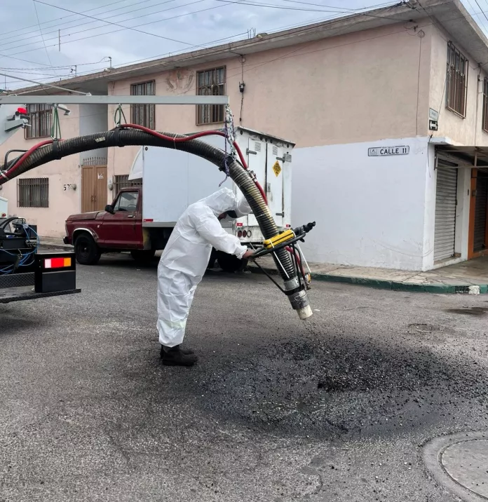 De igual forma, se trabaja en reparación de baches de la calle Montes Aconcagua, en Lomas 2ª Sección; Avenida Potosí, en Lomas 1ª Sección; así como también al norte de la ciudad como Calle 11, Calle 2 y Calle 3, en la colonia Industrial Aviación.