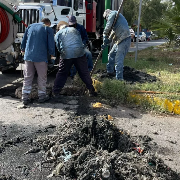 De manera inmediata, las cuadrillas comenzaron con el desazolve y limpieza para bajar los niveles de la línea sanitaria y permitir que el agua residual retome su flujo normal.