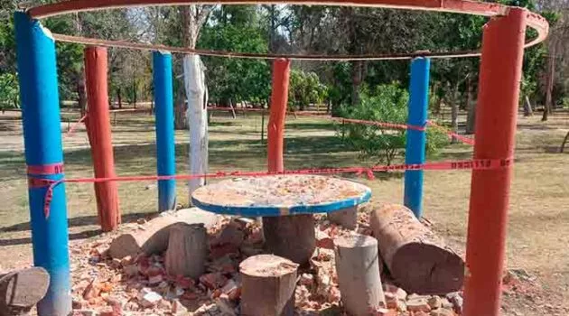 Imágenes y videos difundidos tras el incidente muestran el avanzado desgaste del quiosco, con materiales debilitados y daños visibles que habrían contribuido al colapso. Como medida preventiva, acordonaron el área para evitar el paso de visitantes.