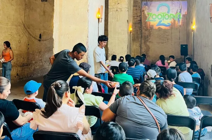 Durante la función, niñas, niños y personas adultas compartieron momentos de alegría y entretenimiento, acompañados de palomitas y refrigerios, lo que permitió generar un espacio accesible y seguro para el esparcimiento de la población.