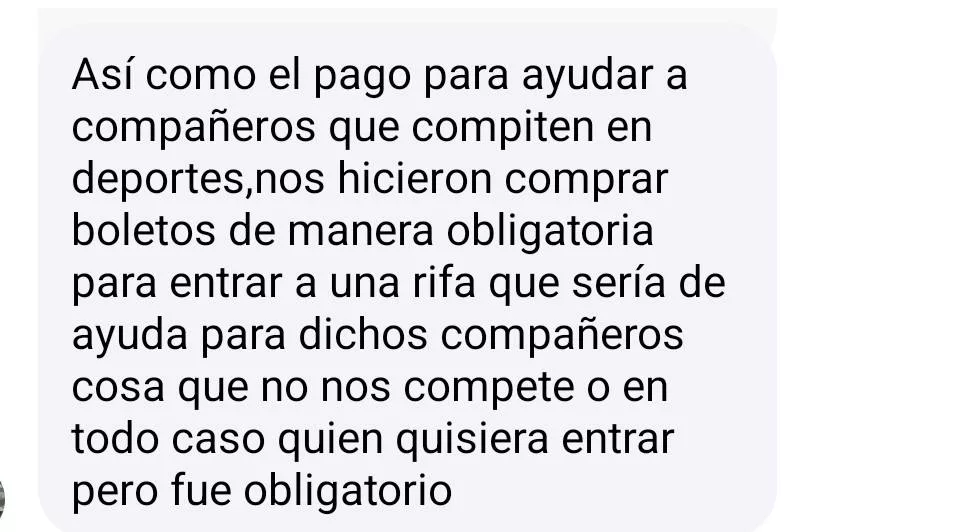 Asimismo, a inicios del año solicitaron a toda la comunidad universitaria la compra obligatoria de boletos para una rifa con valor de 200 pesos cada uno, bajo el argumento de financiar un viaje deportivo a Durango. Según versiones difundidas entre el personal y estudiantes, se habrían comercializado más de dos mil boletos, lo que representaría una recaudación aproximada de 400 mil pesos. Sin embargo, cuestionan que dichos recursos no se reportaron formalmente como ingresos institucionales.