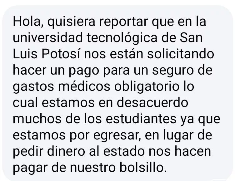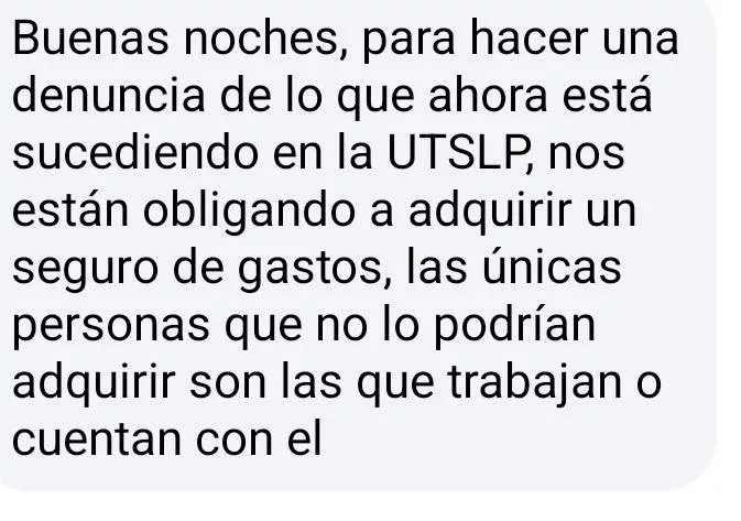 De acuerdo con los señalamientos, en fechas recientes le pidieron al alumnado cubrir el pago de un seguro de gastos médicos adicional a los costos habituales de inscripción y colegiatura cuatrimestral. Esta medida, afirman, representa una carga económica extra que impacta directamente en el presupuesto de las familias.
