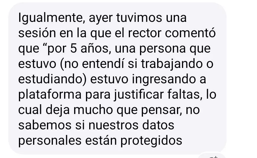 Las críticas también apuntan a la gestión del actual rector, a quien acusan de no contar con el perfil adecuado para el cargo y de incurrir en prácticas de nepotismo. Además, señalan que se han realizado reuniones en el auditorio de vinculación donde presuntamente se advierte sobre posibles consecuencias a quienes externen inconformidades.