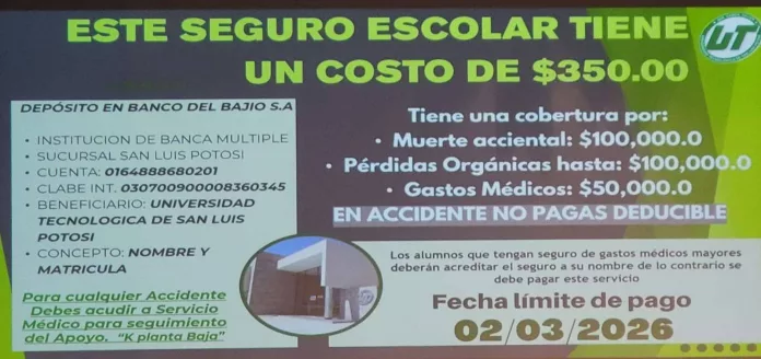 De acuerdo con los señalamientos, en fechas recientes le pidieron al alumnado cubrir el pago de un seguro de gastos médicos adicional a los costos habituales de inscripción y colegiatura cuatrimestral. Esta medida, afirman, representa una carga económica extra que impacta directamente en el presupuesto de las familias.