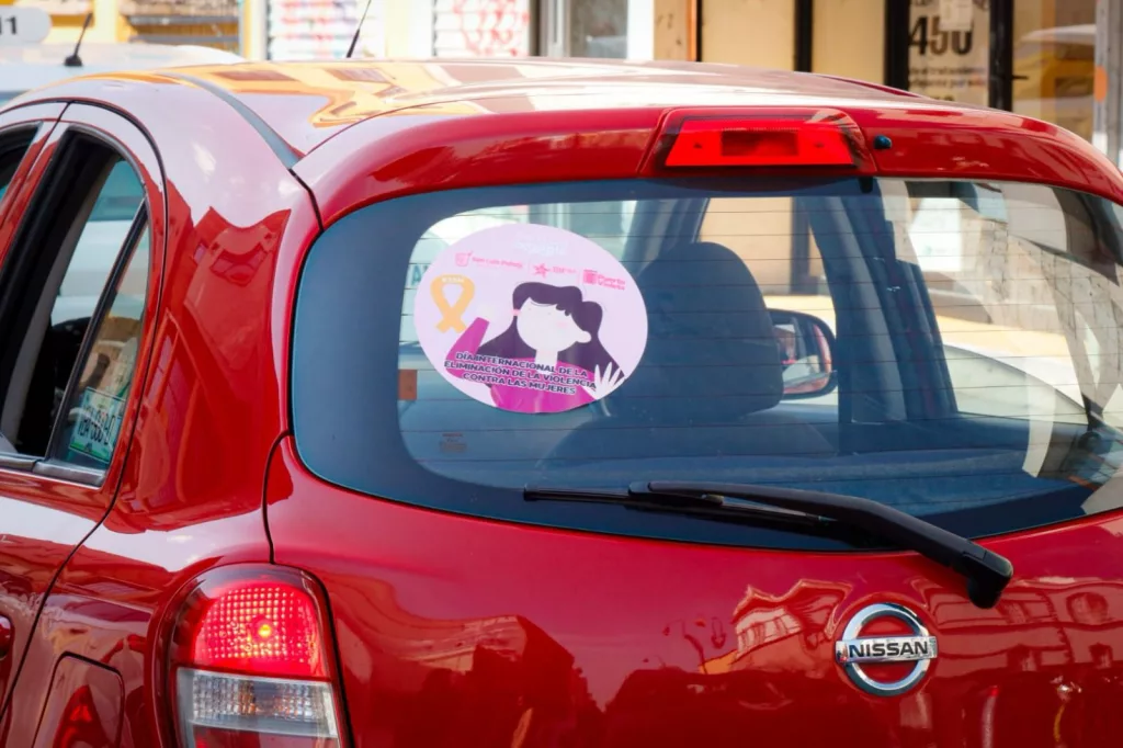Finalmente, colocaron stickers y microperforados en vehículos cuyos dueños autorizaron su colocación, además de que se entregaron trípticos con información relativa a la erradicación de la violencia hacia las mujeres y a dónde pueden acudir en caso de requerir orientación o ayuda, todo esto en el primer cuadro de la Ciudad.
