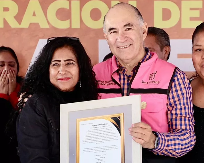 Enrique Galindo es un Presidente Municipal muy cercano a la gente, que escucha y que le gusta dialogar con la población, afirmó Margarita Alvarado, representante vecinal de la Colonia El Rosedal – Los Limones, quien tuvo la iniciativa de entregar un reconocimiento al alcalde.