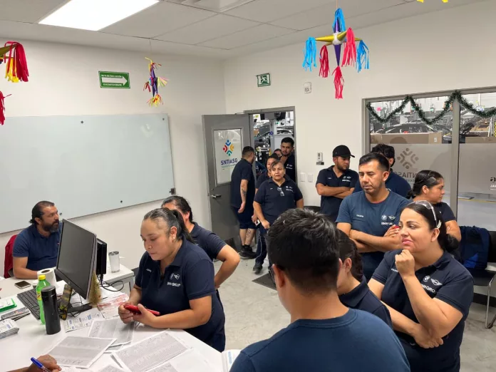 El Sindicato Nacional llevó a cabo la entrega de tarjetas navideñas para trabajadoras y trabajadores de la planta BMW en San Luis Potosí, en una jornada que destacó más por el contacto directo con la base laboral que por el beneficio económico mismo.