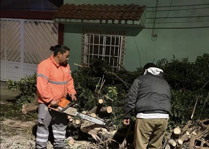 Personal de la Dirección de Servicios Municipales atendió árboles caídos o en riesgo en al menos cinco puntos de la ciudad, con el objetivo de salvaguardar a la población y mantener seguras las vialidades.