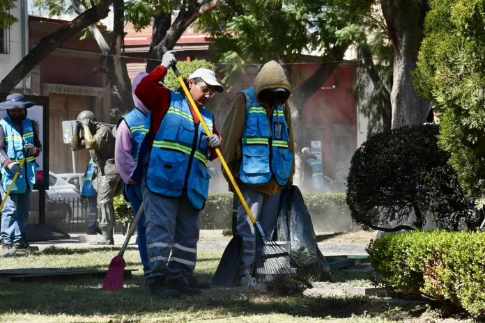 Durante la jornada se realizaron labores de limpieza general, mantenimiento de jardineras, barrido manual y retiro de residuos, además del embellecimiento del entorno del Monumento a Morelos y del Jardín Colón. Estas acciones tienen como propósito garantizar que las y los potosinos cuenten con espacios verdes limpios, seguros y en óptimas condiciones.