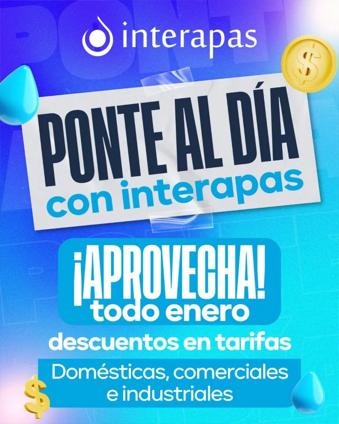 Interapas recuerda que los descuentos que están disponibles, van de un 30 hasta un 50 por ciento y aplica en cuentas con adeudos del 2025 hacia atrás, que se hayan beneficiado de otro esquema de incentivos fiscales.