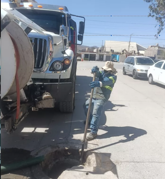 Personal operativo realizó un sondeo con camión hidroneumático para liberar la red sanitaria, de donde se extrajo una gran cantidad de basura, además de telas y trapos que mantenían la línea bloqueada y provocaban el brote desde la línea sanitaria.