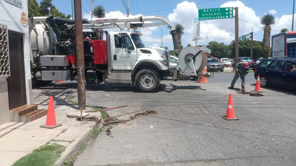 INTERAPAS continuará con la limpieza y desazolve preventivo de las líneas sanitarias e invita a reportar cualquier incidencia a través de la línea Fuga Cero 444 301 8874 o en redes sociales oficiales del organismo.