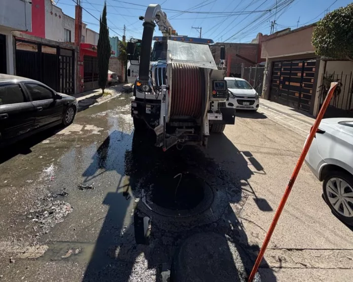 Asimismo, se intervino Pedro Montoya, entre Nezahualcóyotl y Tangamanga, donde se desazolvaron 130 metros de red a través de 12 pozos de visita, dejando la línea en condiciones adecuadas de operación.