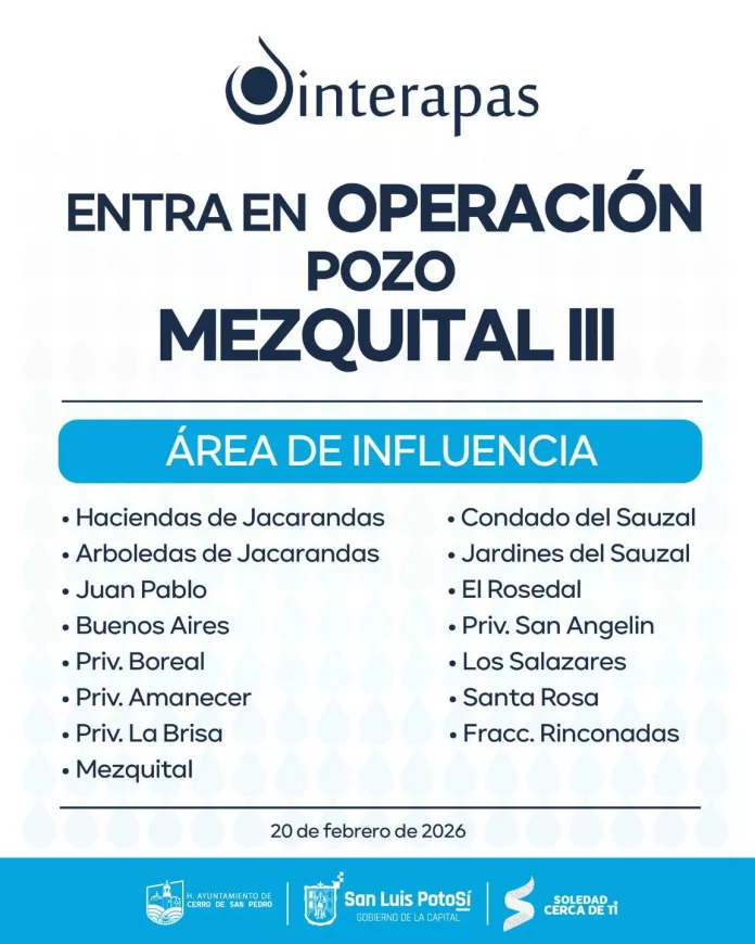 INTERAPAS concluyó la rehabilitación del pozo Mezquital III, ubicado al norte de la ciudad, el cual ya se encuentra nuevamente en operación para fortalecer el suministro de agua en su zona de influencia.