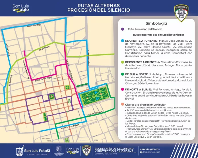 La Secretaría de Seguridad y Protección Ciudadana a través de la Dirección General de Policía Vial y Movilidad, implementará un dispositivo vial este viernes 03 de abril con motivo de la Procesión del Silencio que se realizará en principales calles del Centro Histórico.