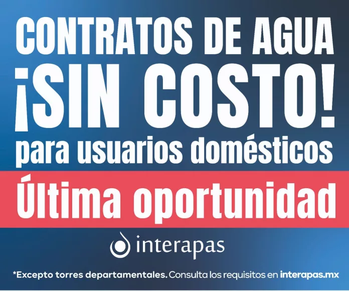 INTERAPAS invita a las y los usuarios a no dejar pasar esta oportunidad, ya que es la última etapa del programa para regularizar el servicio de agua sin costo de contratación.