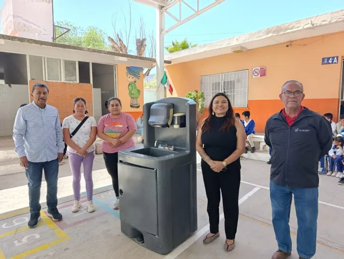 Por ello, la titular de la referida demarcación, Alexandra Daniela Cid González resaltó la acción de la empresa DRÄXLMAIER Group México, la que al donar un lavamanos portátiles se benefició directa y principalmente a estudiantes de la escuela “Juan Sarabia”.