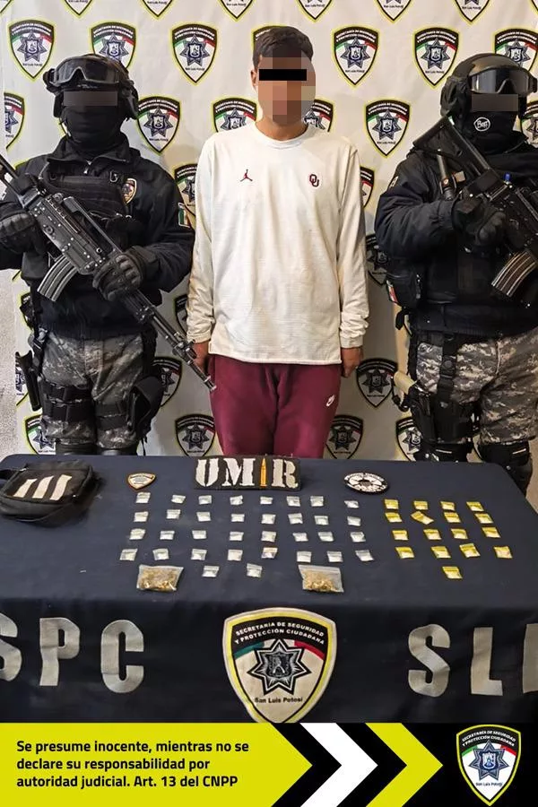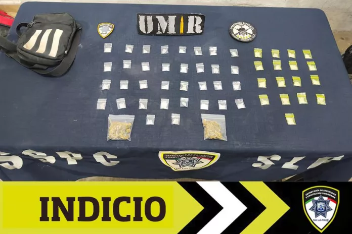 Como resultado de una efectiva acción policial de oficiales de Guardia Municipal de la Secretaría de Seguridad y Protección Ciudadana (SSPC) se logró la ubicación y detención de un hombre de 32 años que fue ubicado consumiendo enervantes en la Central de Abastos, el individuó intentó huir del lugar y mostró resistencia en todo momento, en la inspección preventiva, le fueron encontradas 51 dosis de la droga conocida como cristal, además de dos envoltorios que contenían marihuana.